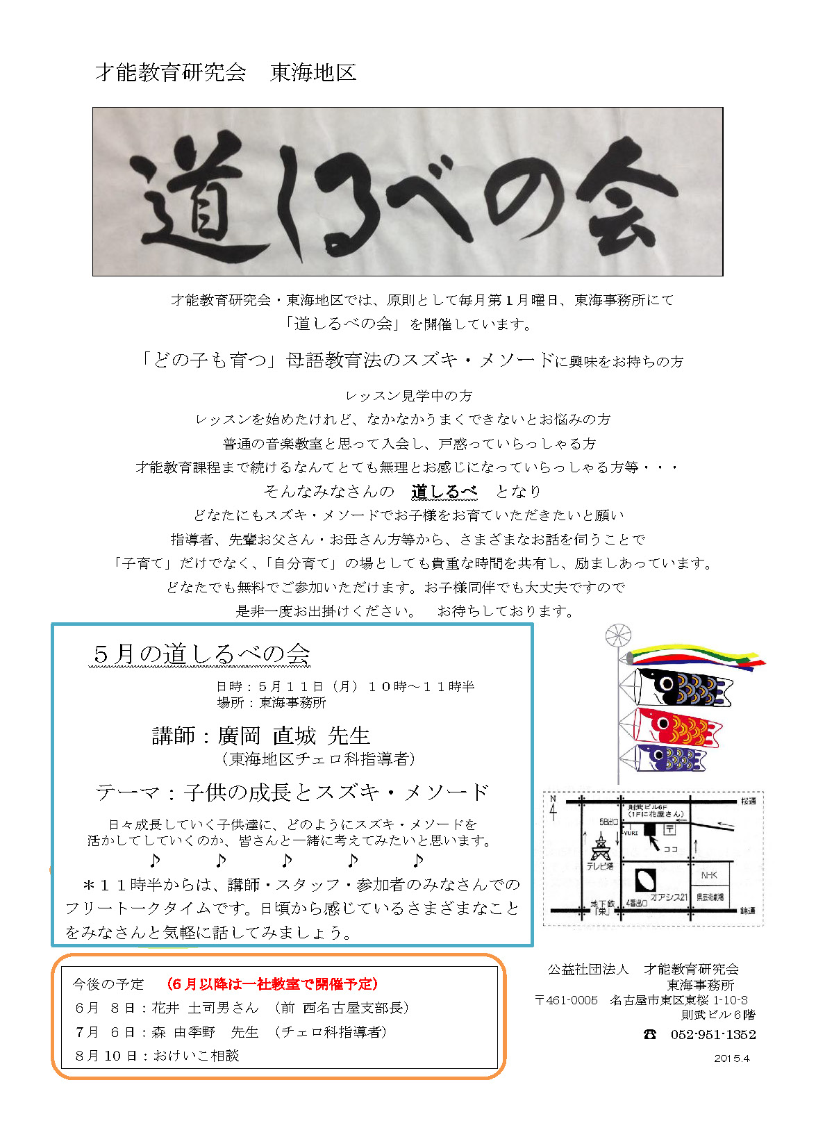 才能教育研究会・東海地区では、原則として毎月第1月曜日、東海事務所にて