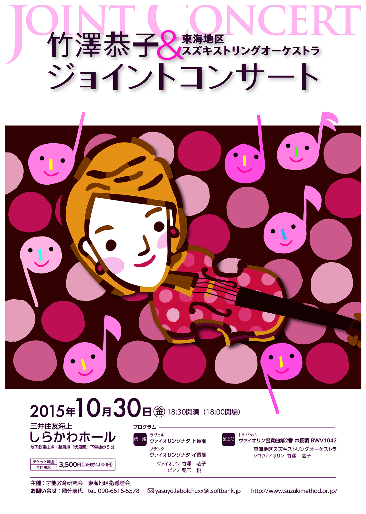 世界で活躍されている竹澤恭子さんと、スズキメソード東海地区の生徒によるジョイントコンサートです。この地区では上級生になる子どもたちが、先輩にあたる竹澤さんから多くのことを学べる幸せな機会です。是非お聴き下さい。