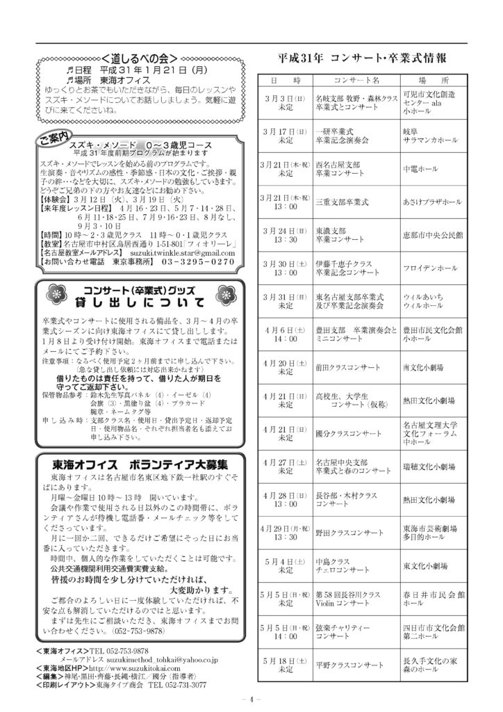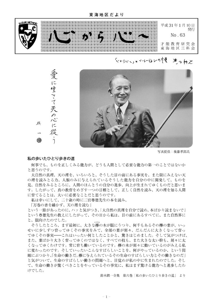 東海地区だより 2019年最初となる63号を掲載します。