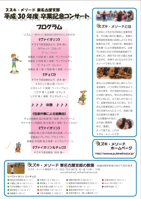 スズキ・メソード東名古屋支部 平成30年度 卒業記念コンサート